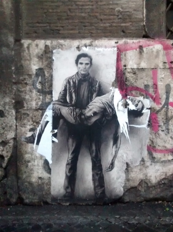 Pasolini 40 ans après by Ernest Pignon-Ernest, paper on wall, ca 170x150, Rome (Italy), 2015
