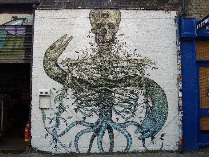 First, these societies are those of transience, fast-food, fashion, planned obsolescence, consumption, speed, change, consumerism: now, consumerism is both stigmatized and stimulated by Street Art because of its ephemeral nature. Thus, it fits with a general trend to an «escalade de l’éphémère» –escalating of the ephemeral– (Lipovetsky & Serroy, 2013) and an «accélération du temps» –speeding up of time– (Rosa, 2010). It expresses a type of «présentisme» –presentism– (Hartog, 2003; Laïdi, 2000) understood as the «ethos du moment contemporain» –the ethos of the present time– (Taguieff, 2000, p. 10), not only because like many works of contemporary art such as installations, happenings, performances or participative art, it is fleeting, but also because of the «raccourcissement des réseaux temporels entre le moment de la création et le moment de sa mise dans l’espace public» –the short time between the creation of the artwork and its availability to the public– (Heinich, 2014, p. 316-319).