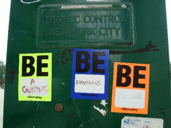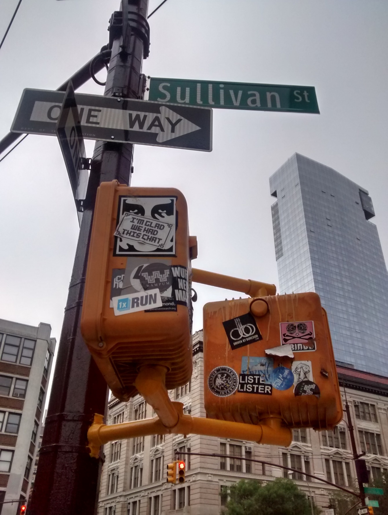 Untitled, stickers on traffic light, ca 10x15, New York (USA), 2015