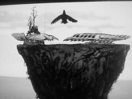 Qiu Anxiong (Qiū Ànxióng 邱黯雄, 1972-) quant à lui, replace la nature dans une perspective culturelle très ancienne : il a en effet réalisé en 2006 The New Book of Mountains and Seas (Xīn Shānhăi jīng 新山海经, 2006), une fascinante allégorie du monde moderne inspirée par l’un des grands classiques de la littérature mythologique chinoise, le Livre des monts et des mers9 (Shānhăi jīng 山海经, voir la traduction de Mathieu, 1983). Tout comme cette œuvre se voulait une description du monde de l’époque, avec une quantité impressionnante de notions géographiques et de légendes diverses, le film de Qiu Anxiong revisite le monde moderne, avec ses monstres et ses mythes. Ainsi, les représentations allégoriques du monde moderne choisies pour illustrer les horreurs de l’urbanisation et de l’industrialisation sauvage sont extrêmement efficaces : des tortues se nourrissent de pétrole ou des oiseaux noirs menaçants émergent des dunes du désert et se transforment en chasseurs-bombardiers contribuant à créer une image apocalyptique de notre univers.